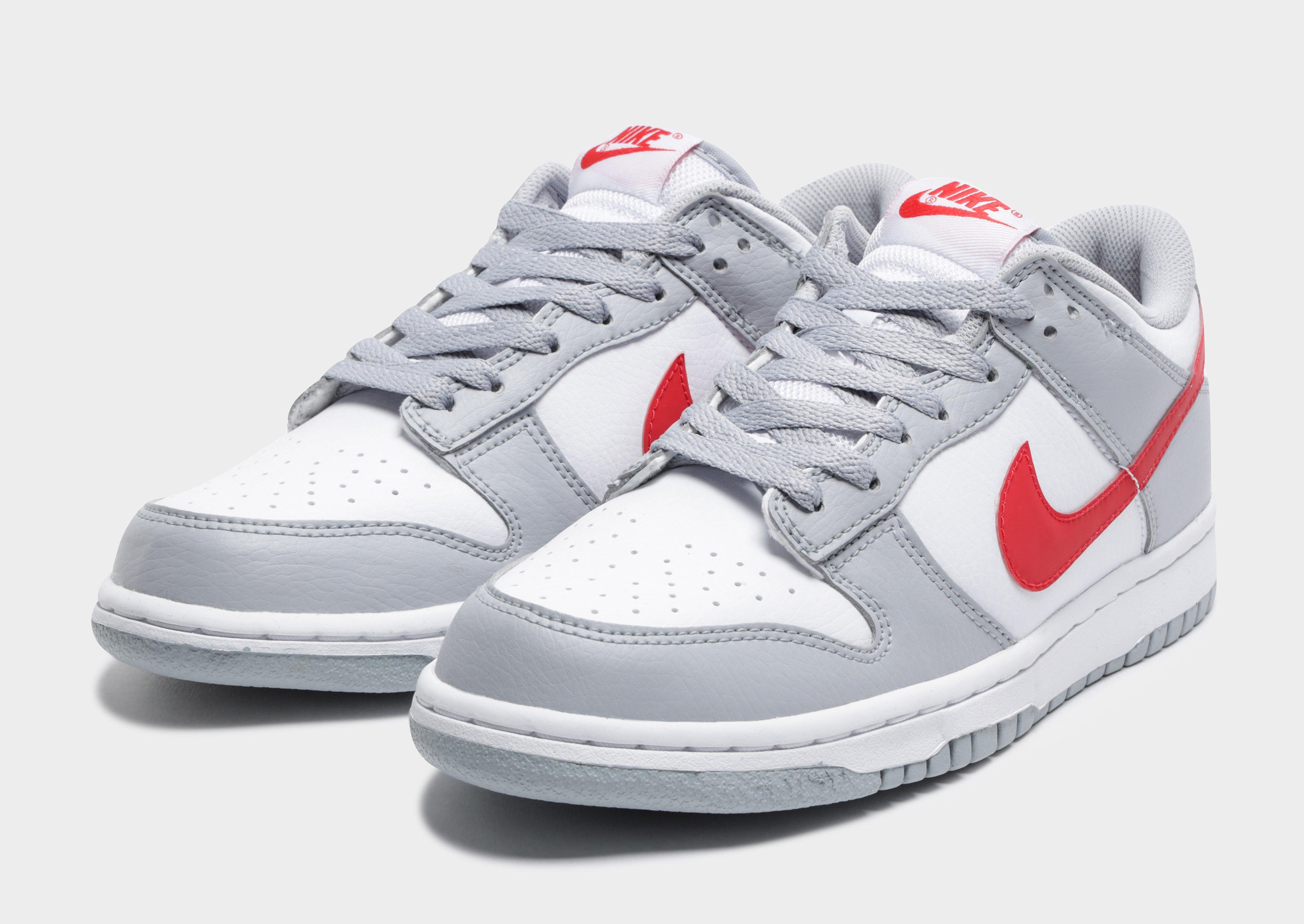 grey and red dunks