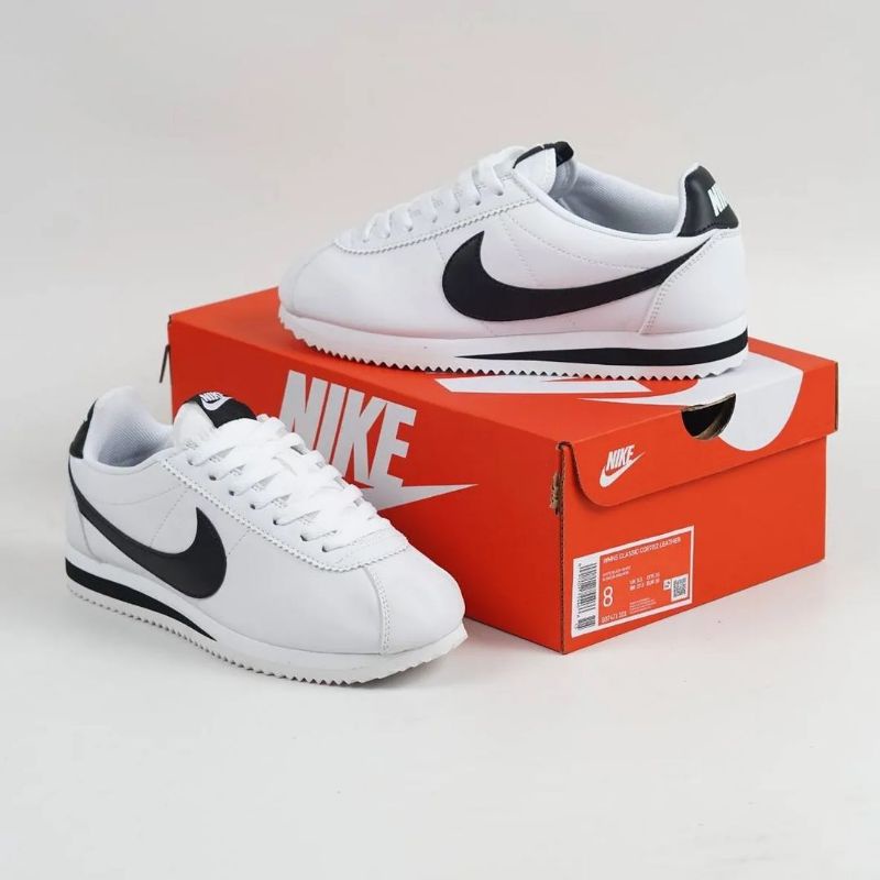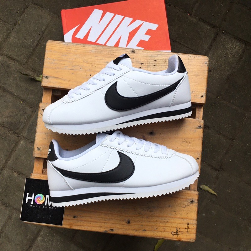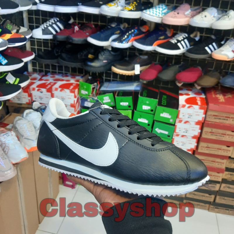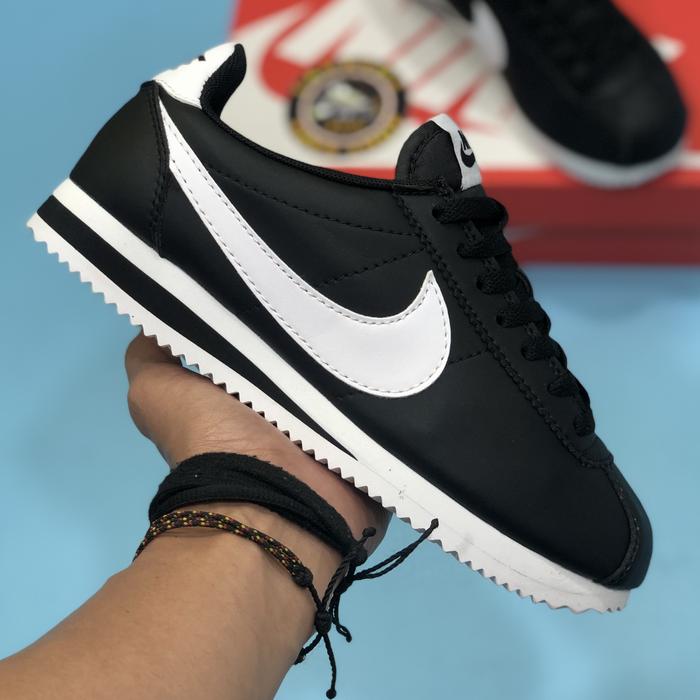 nike cortez black with white swoosh