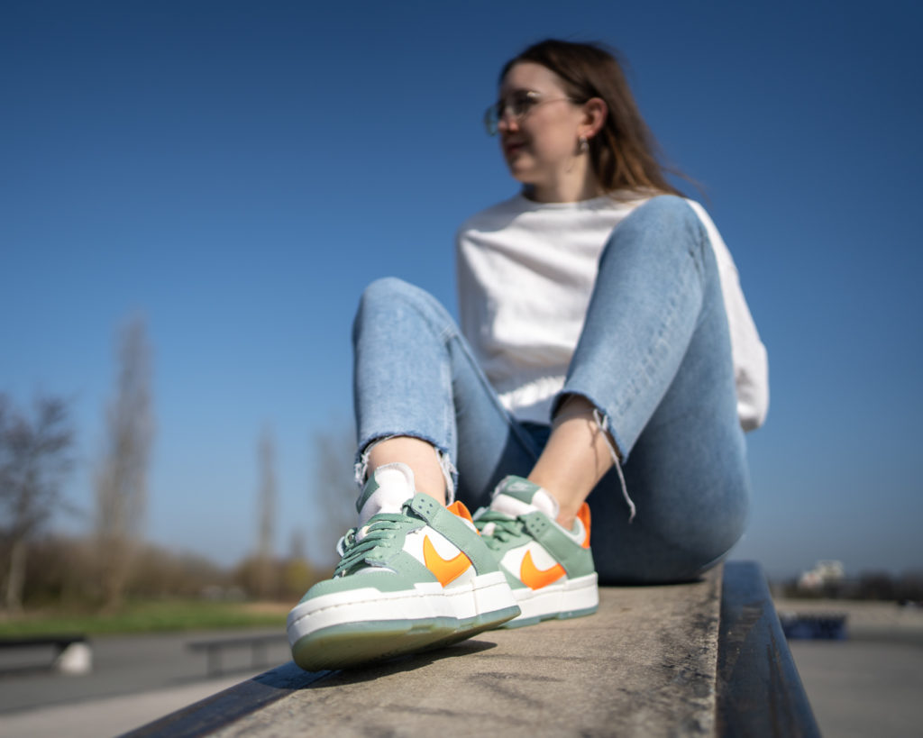 nike dunk low disrupt sea glass on feet