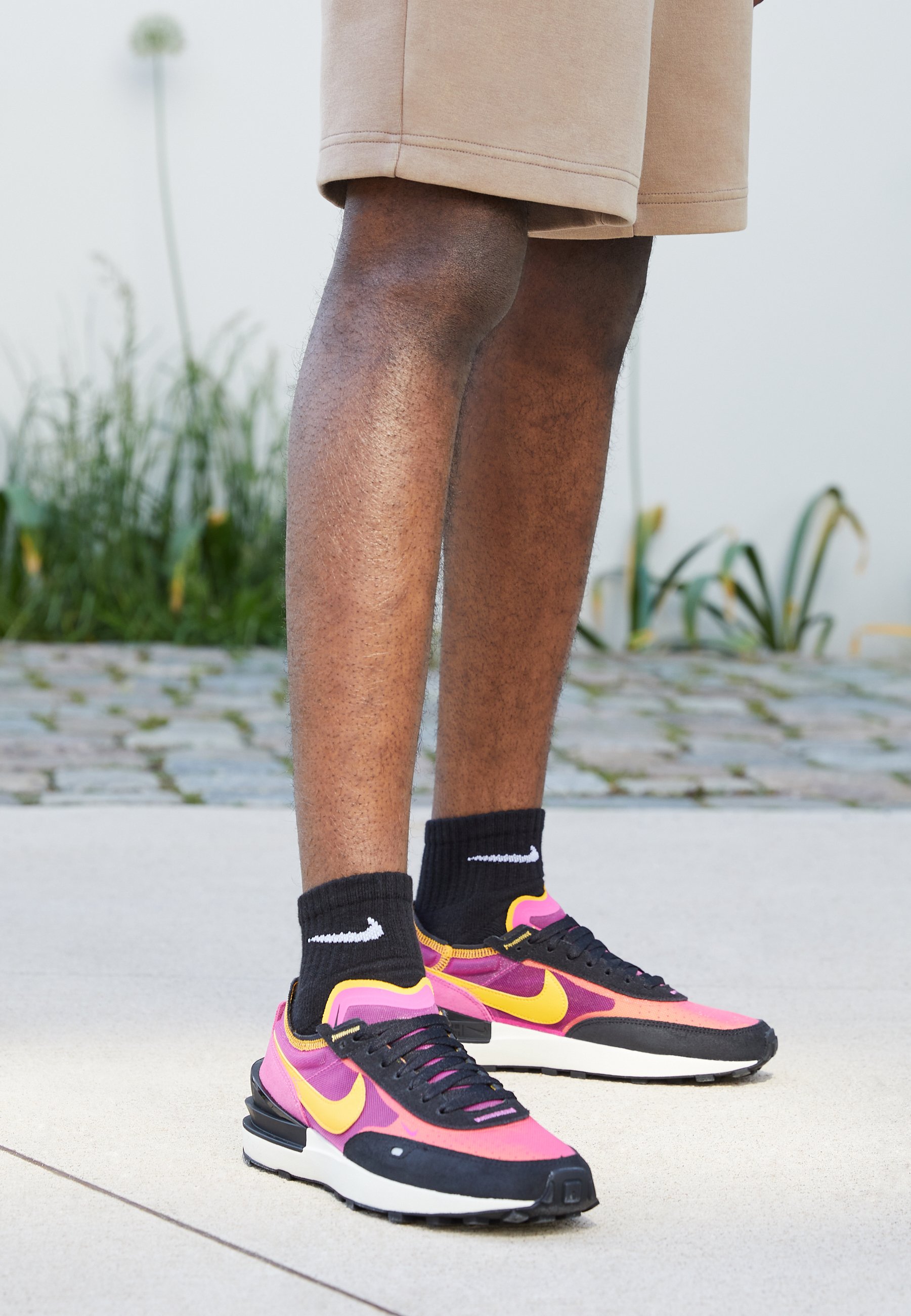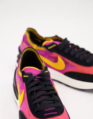 nike waffle one trainers in black pink and orange