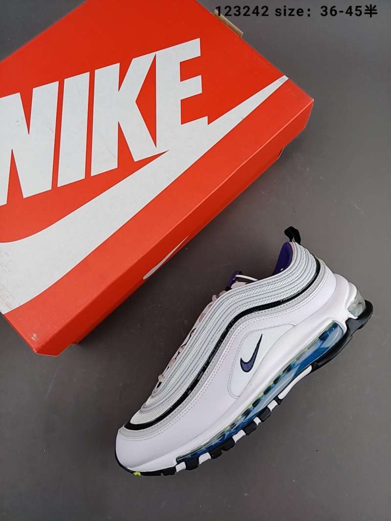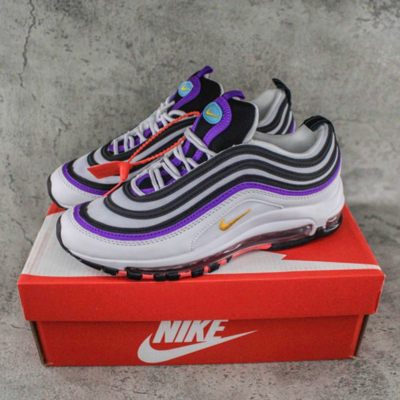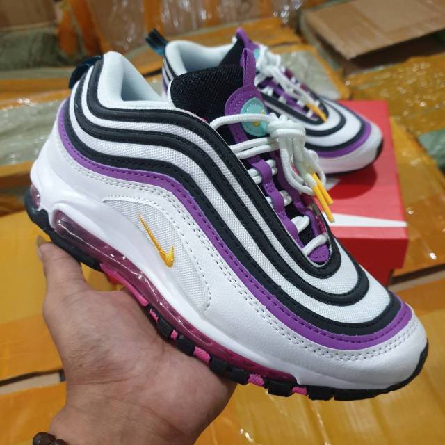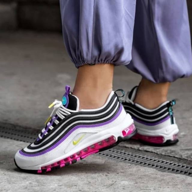purple white and green air max 97