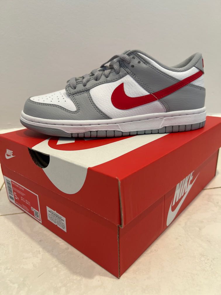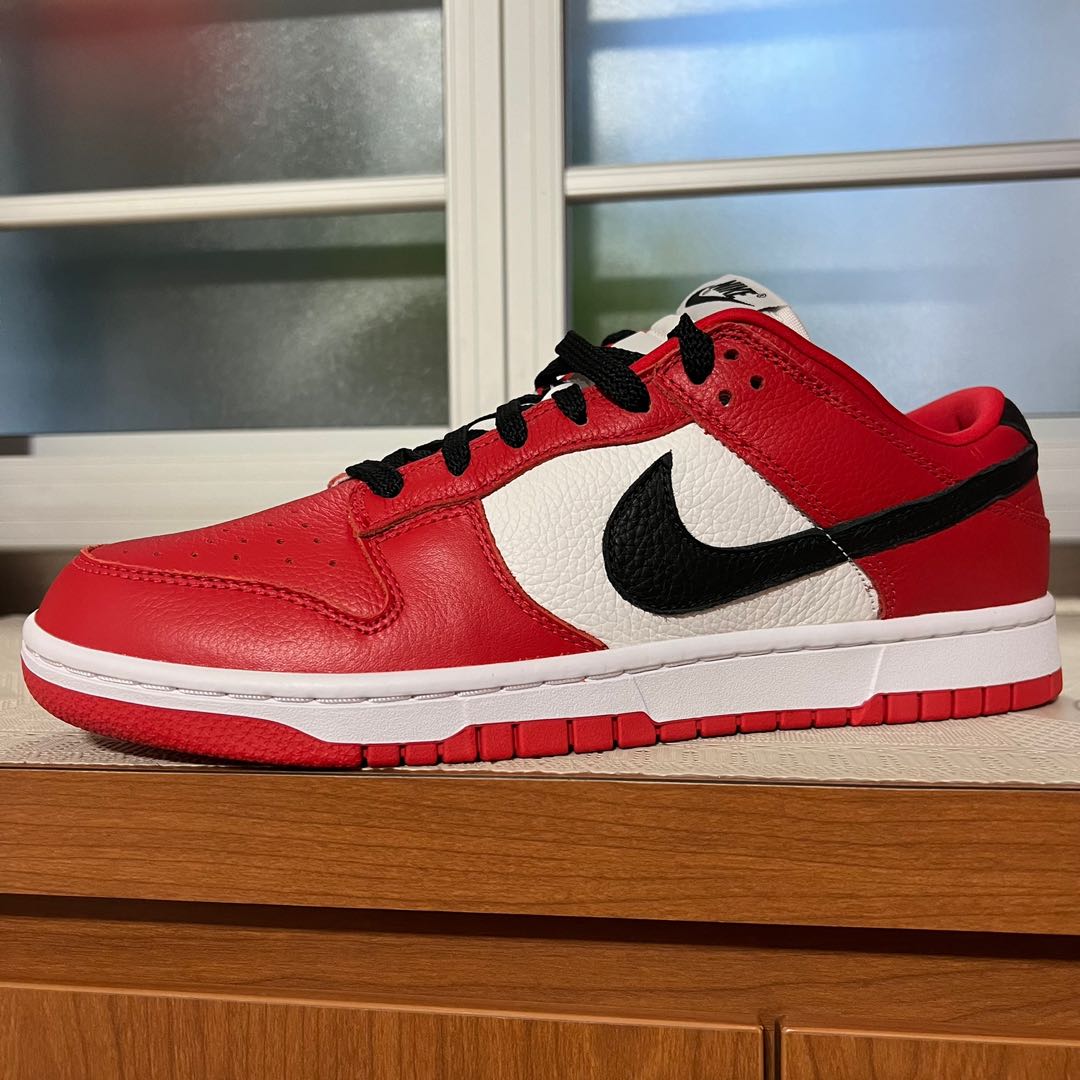 red and white low dunks