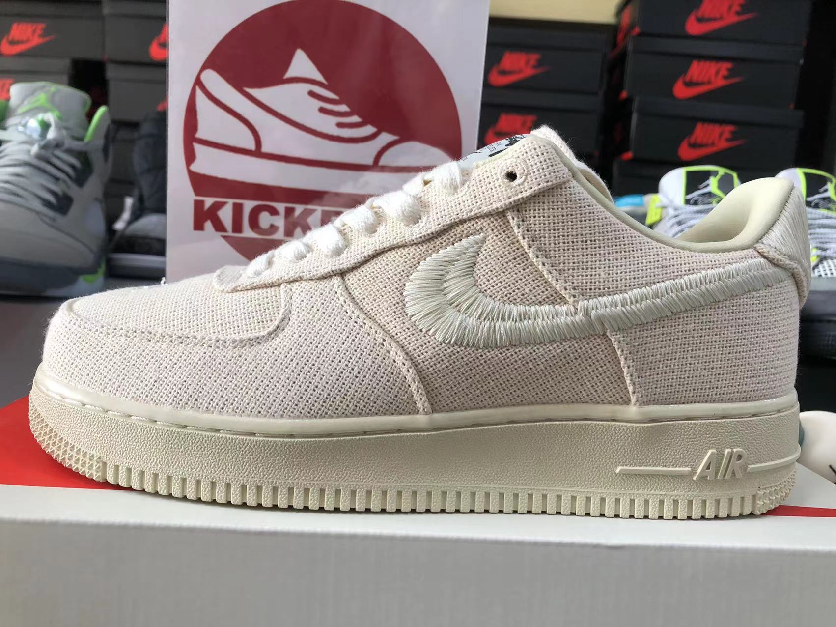stussy x nike air force 1 low fossil stone