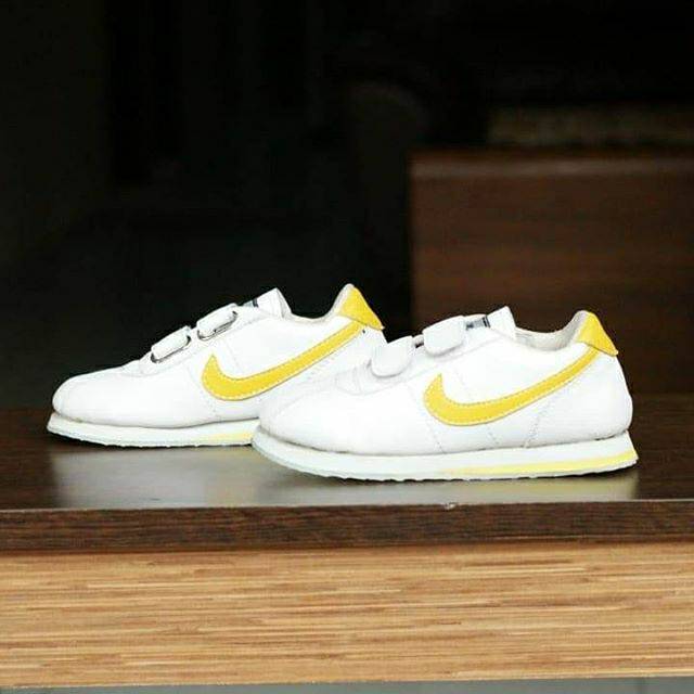 white and yellow nike cortez